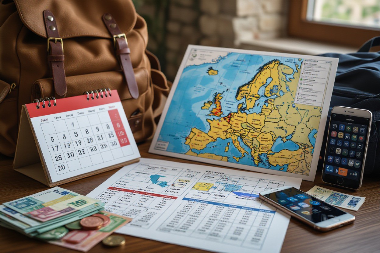 | Booking | Reserve long-haul flights 2-4 months out, trains/ferries 2-8 weeks, hostels 1-3 months for summer |